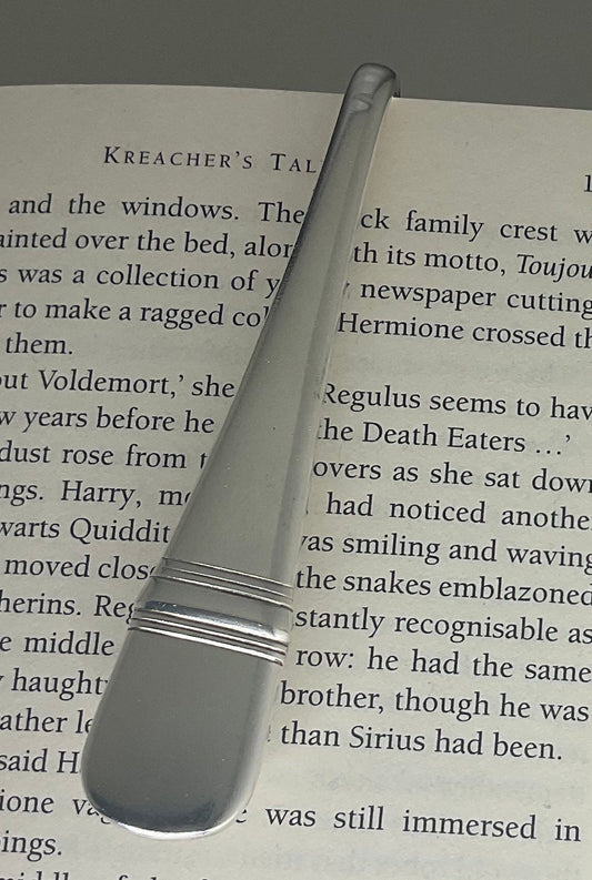 Custom Bookmark Made from Vintage/Antique Silverware Spoon with “one more page” hand stamped. Perfect Gift for Book Lover, teacher, author