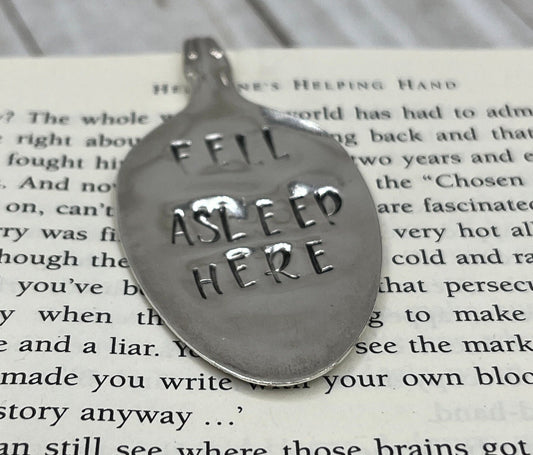 Custom Bookmark from Repurposed Vintage Antique Silver Plated Spoon - Metal Bookmark - Unique Gift for Book Lovers - Fell Asleep Here