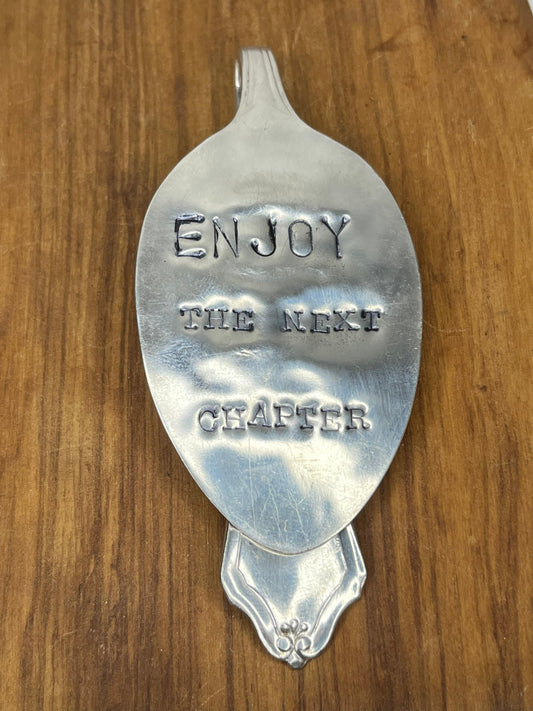 Silver Bookmark Made Hand Stamped “Enjoy the next chapter”