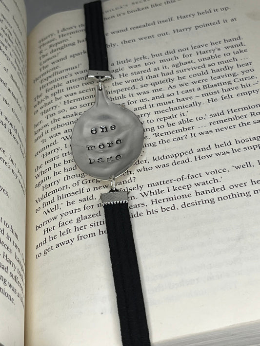 Spoon Metal Bookmark on elastic cord with One More Page quote