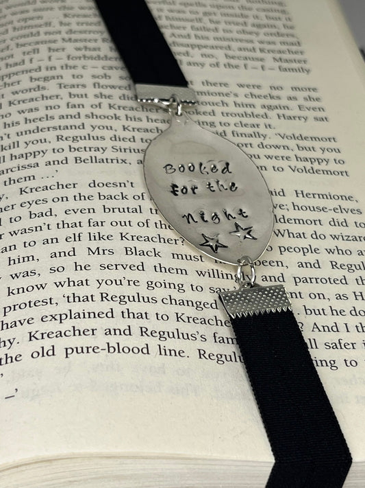 Spoon Metal Bookmark on elastic cord with Booked for the Night quote