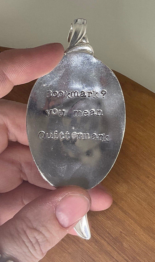 Handstamped Spoon bookmark with the quote ‘I fell asleep here’