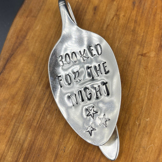 Custom Bookmark Made from Vintage/Antique Silverware Spoon with “Booked for the Night”