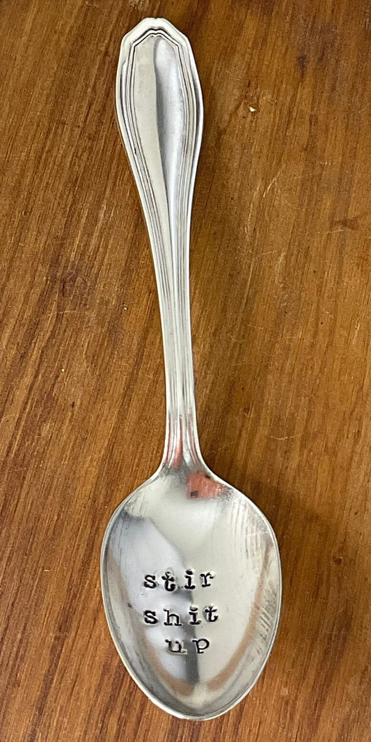 Vintage Silver Plated Spoon with the saying “Stir Shit Up”. Teaspoon with attitude, Sugar spoon, Unique Friend Gift, Graduation Present