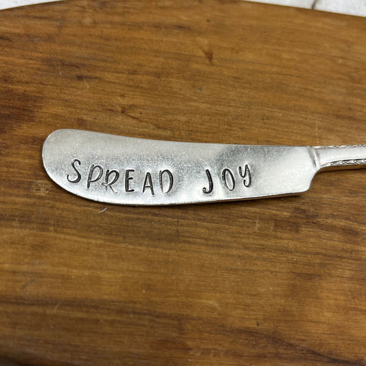 Unique Silver Butter or Spreader Knife, Hand stamped from vintage silver plated butter knife. Unique host, wedding or housewarming gift