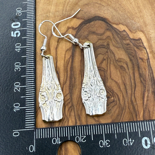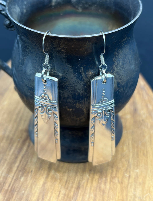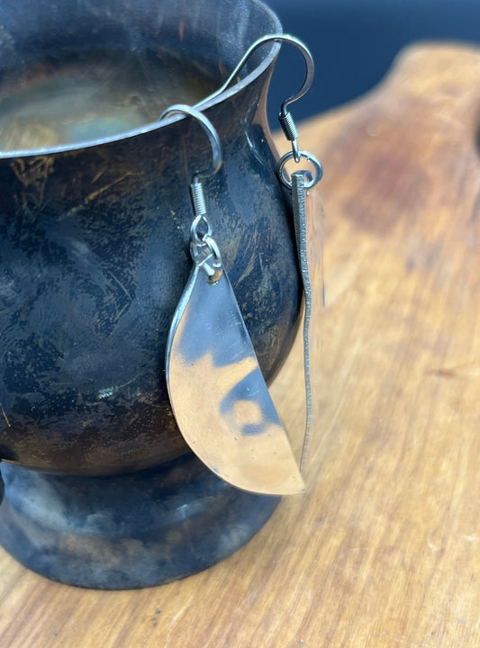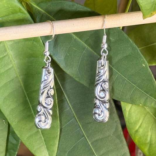 Silver Drop Earrings made from Vintage Spoon ends, Silverware Jewelry, Unique Gift for her