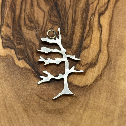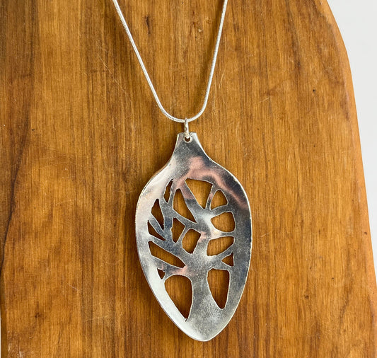 Silver Tree Pendant Hand cut from vintage spoon bowl