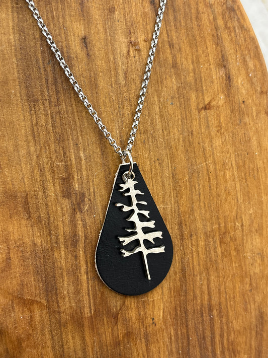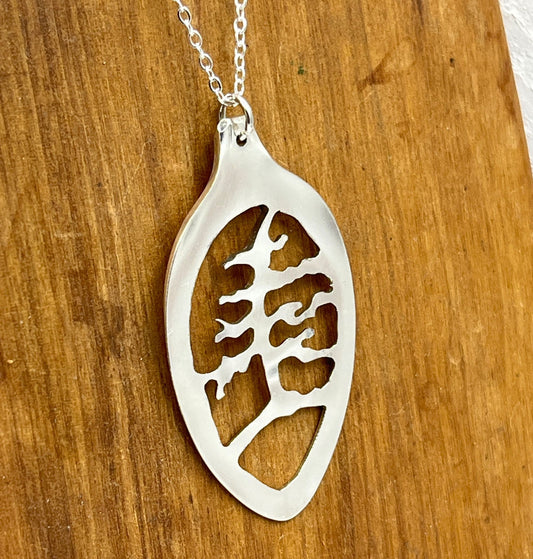 Tree Pendant Hand Drawn and Cut from Vintage?Antique spoon bowl, silver necklace pendant for her, Pine Tree Necklace, Eco Friendly Upcycled