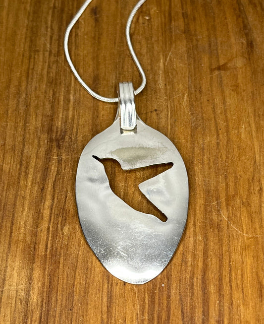 Silver Tree Pendant Hand Drawn and Cut from Vintage spoon bowl