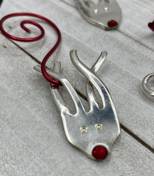 Fork Reindeer Christmas Tree Ornament Made from Antique Silver Plated Fork, Personalized Ornament, Custom Family Holiday Decoration, Rudolf