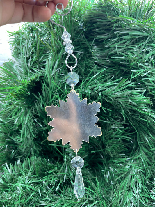 Silver Snowflake Christmas Tree Ornament Made from Antique Silver Trays