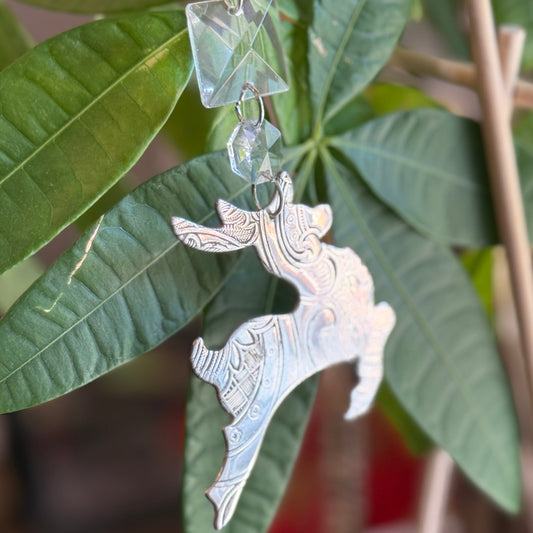 Silver Reindeer Christmas Tree Ornament Made from Antique Silver Trays