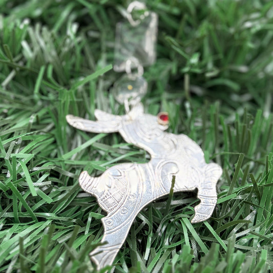 Silver Reindeer Rudolf Christmas Tree Ornament Made from Antique Silver Trays