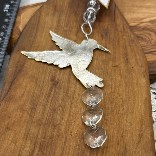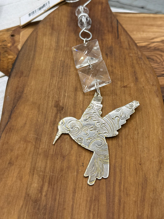 Silver Hummingbird Christmas Tree Ornament with crystals
