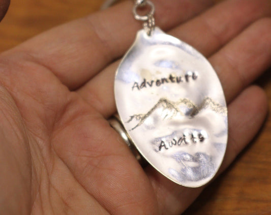 Silver Spoon Keychain Hand Stamped Adventure Awaits