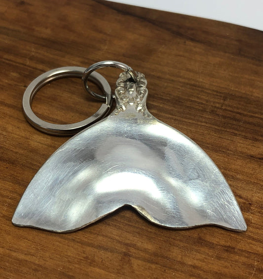 Silver Whale Tail Keychain Hand Cut from Silver Spoon Bowl
