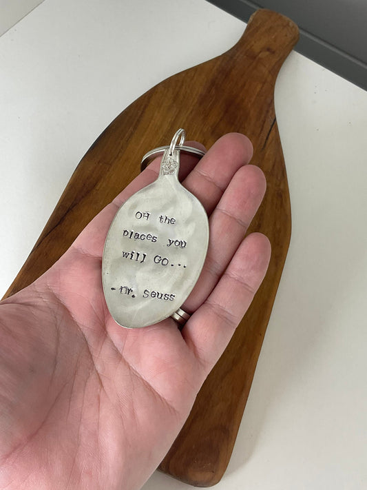 Spoon Keychain with the Quote “Oh the Places you will Go”