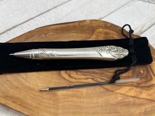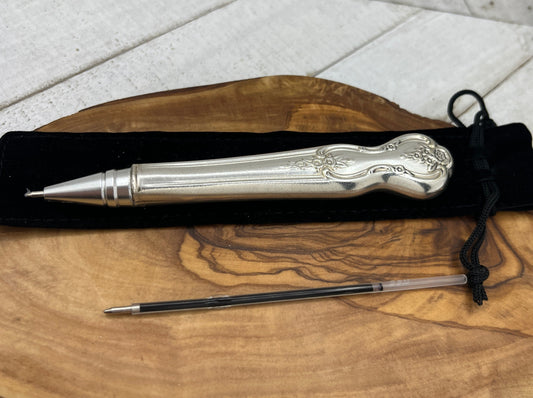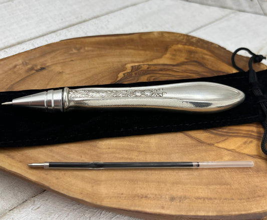 Silver pen made from antique hollow knife handles - Black ink - Reusable