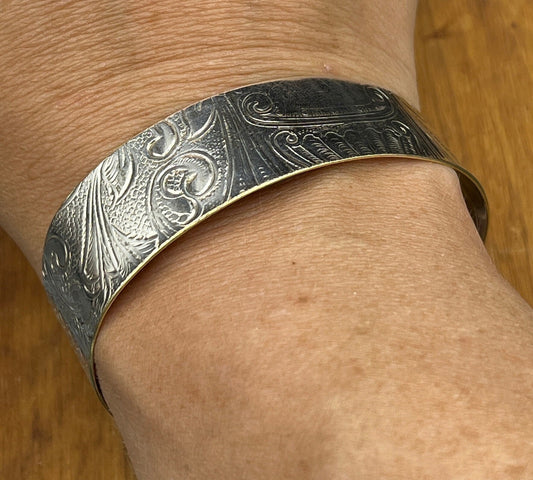 Upcycled Silver Tray Cuff Bracelet - Eco-Friendly Jewelry - Handcrafted Silver Cuff - Repurposed from Vintage Silver Tray