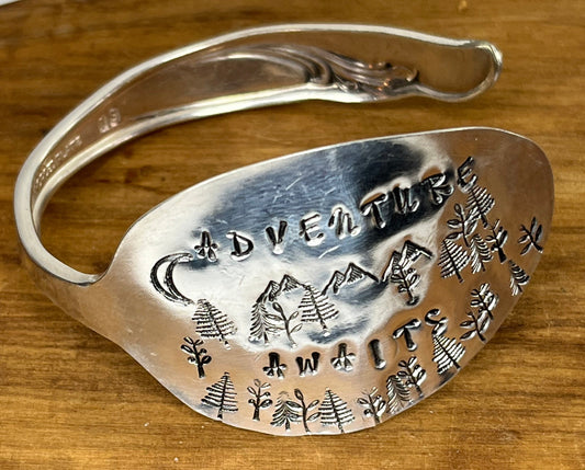 Silver Spoon Bracelet “Adventure Awaits" hand stamped