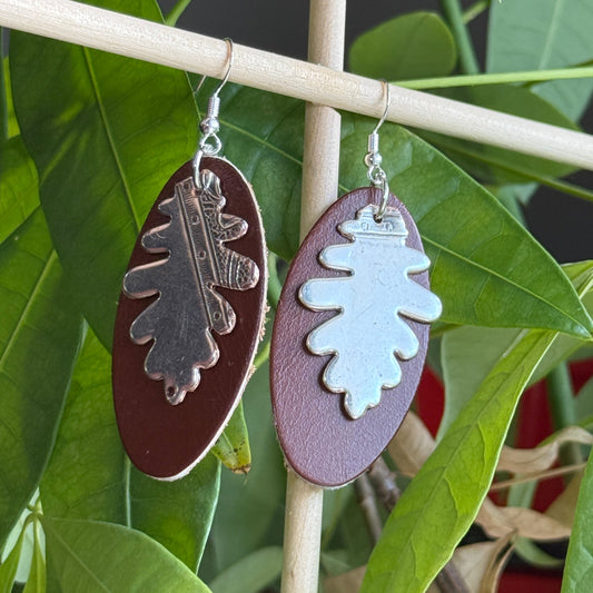 Silver and Leather Leaf Dangle Earrings