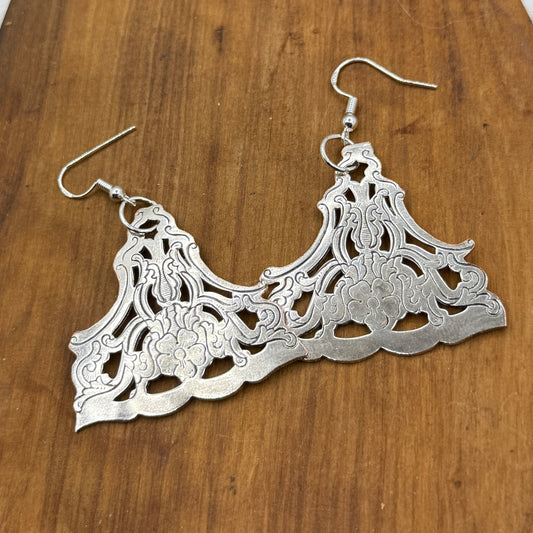 Silver drop earrings made from vintage silver plated trays