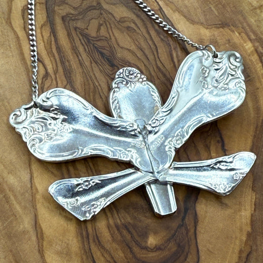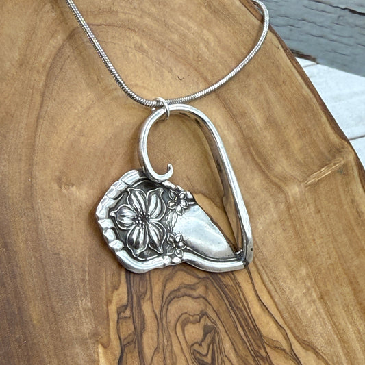 Silver Heart Pendant and Necklace Handmade from Vintage and Antique Silver Plated Spoon and Fork Ends