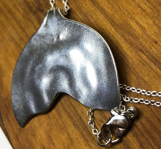 Silver Whale Fluke Pendant made from Silver spoon bowl and hand cut into the shape of a whale tail, Silver Whale Pendant for her.