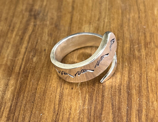 Silver Fork Ring made from Vintage Silver plated serving fork tine with mountains