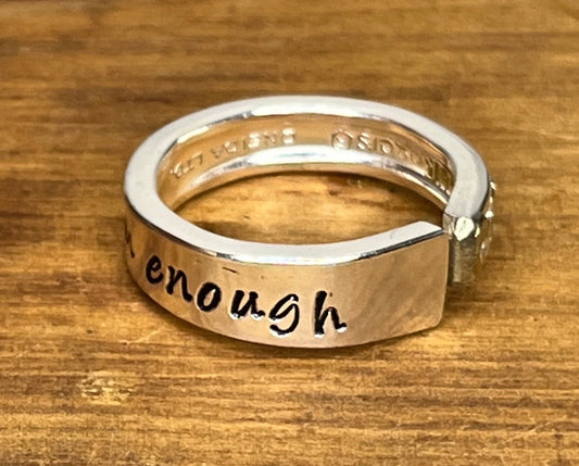 Silver Wrap Ring made from Vintage Spoon Handle with “I am Enough” hand stamped, Silverware Jewelry, Silver Spoon Ring for her,