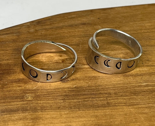Silver Wrap Ring made from Vintage Silver plated fork tine with the phases of the moon hand stamped around, Silverware Jewelry, Spoon ring,