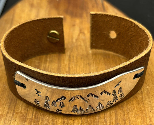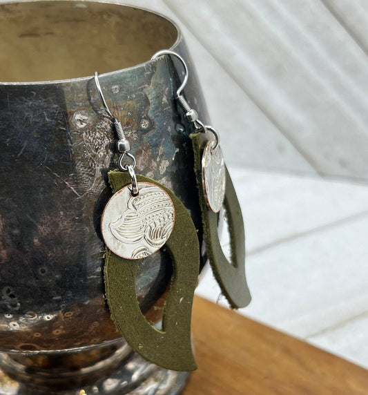 Leaf Silver and Leather Earrings Made from Antique Silver Trays and Repurposed Leather, Unique Boho Style Jewelry Accessories