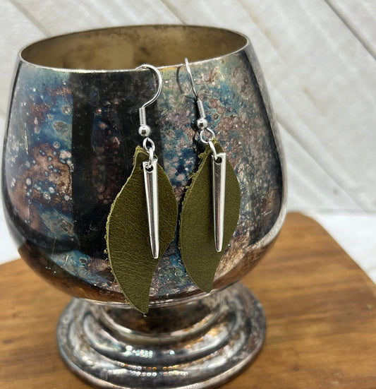 Leaf Silver and Leather Earrings Made from Antique Silver Fork Tines and Repurposed Leather, Unique Boho Style Jewelry Accessories